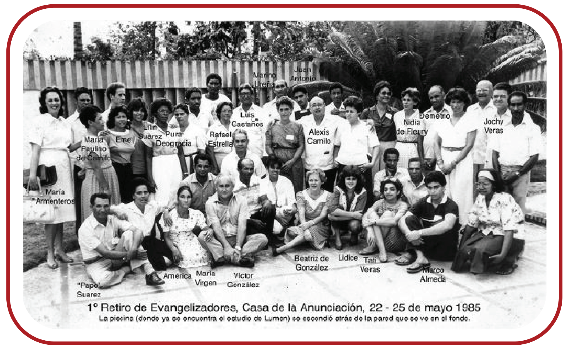 Así, el 28 de noviembre de 1982, y después de un retiro en Samaná, RD, queda fundada la Comunidad. Los primeros ocho miembros de la Comunidad fueron el Siervo de Dios Padre Emiliano Tardif, M.S.C.; el Diácono Evaristo y su esposa, Yolanda Guzmán; María Armenteros Malla; John y Nidia Fleury; Pura Deogracia; y Emenegilda Almánzar.